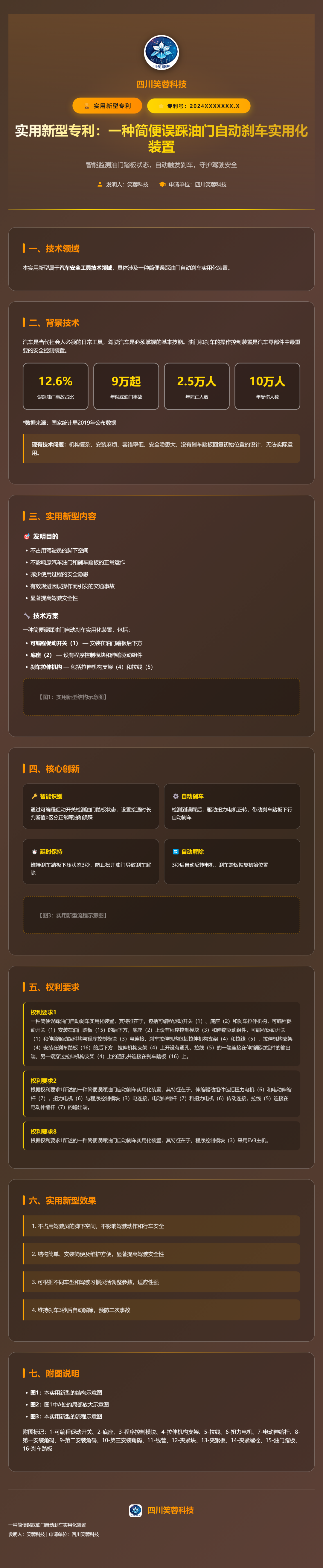 实用新型专利1:一种简便误踩油门自动刹车实用化装置